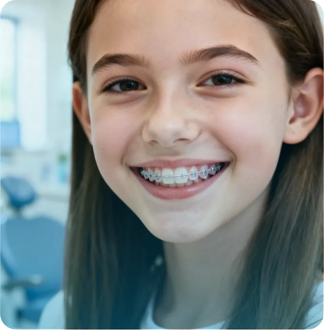 Straightens teeth and improves bite alignment using braces or clear